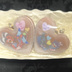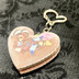 チョコレートハートマカロンの形をしたキーホルダーに、2025年バレンタイン衣装のストリツがプリントされています